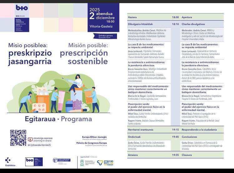 El Instituto de Investigación Sanitaria Bioaraba organiza el Encuentro con la Ciudadanía que se celebra el próximo día 2 de diciembre de 2025 a partir de las 18:00 hrs. en el Palacio de Congresos Europa (Auditorio Francisco de Vitoria).